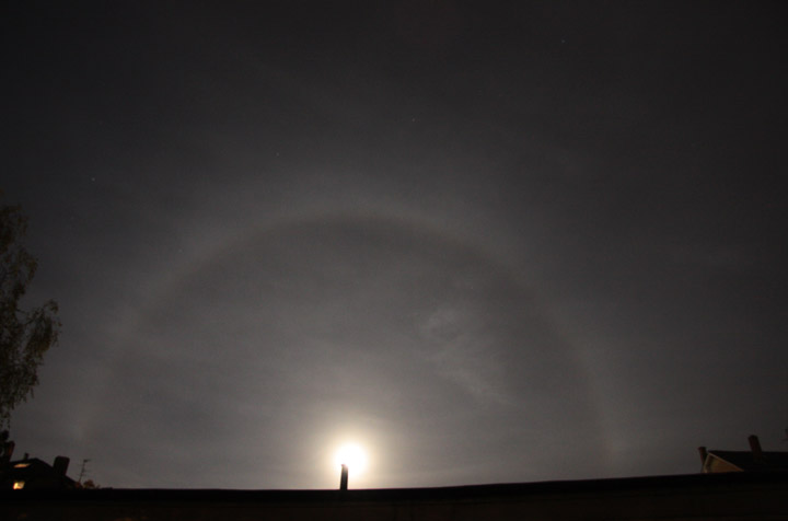 - Der Mond mit großem Halo am Abend des 30.10.2012.
