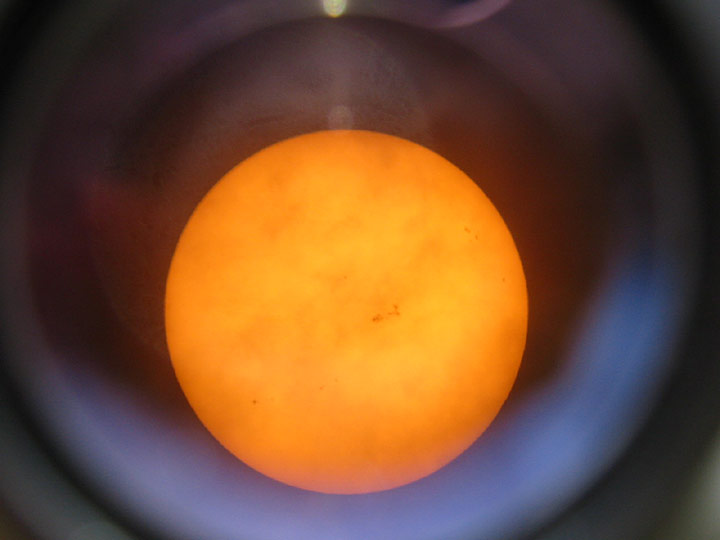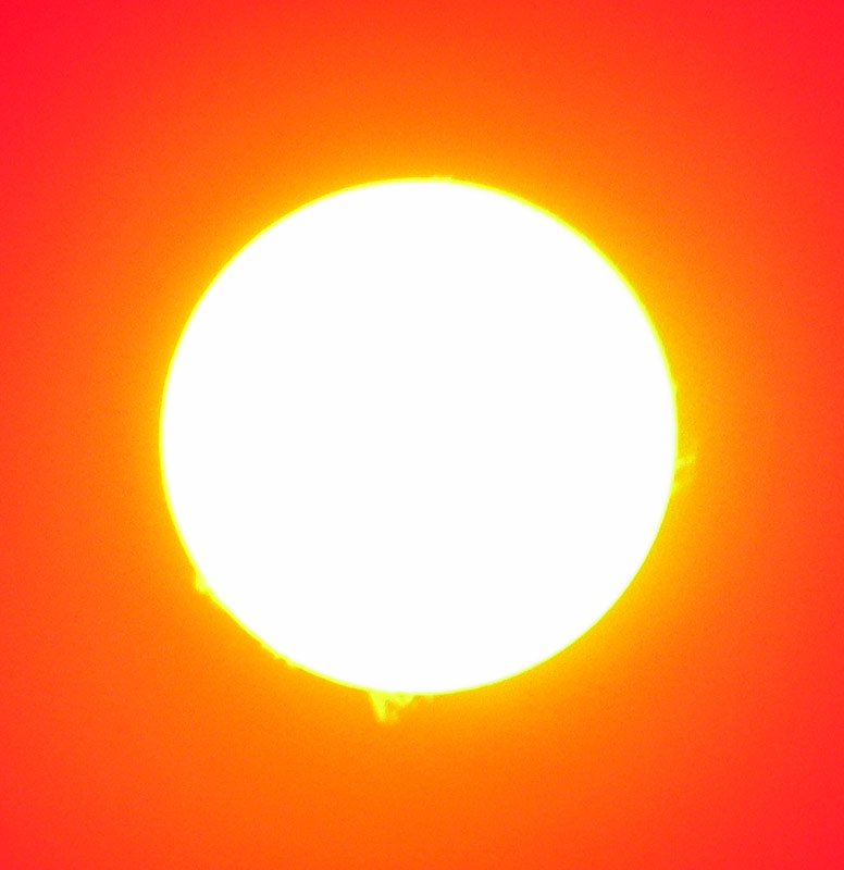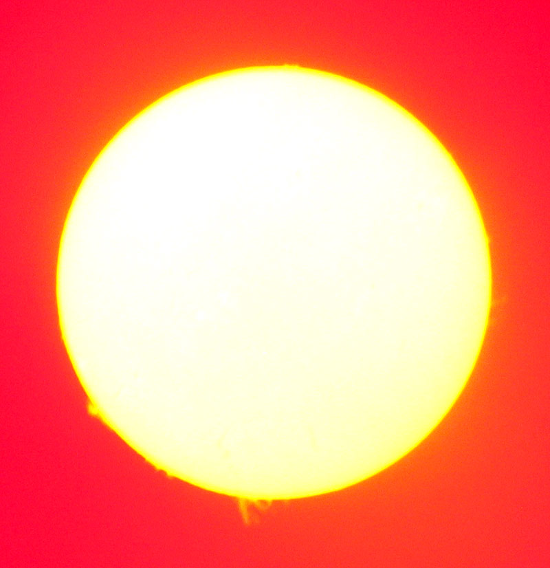 Sonne mit Sonnenflecken – Kamera hinters Okular gehalten und fotografiert. Sonnenfilter vor dem Objektiv nicht vergessen!